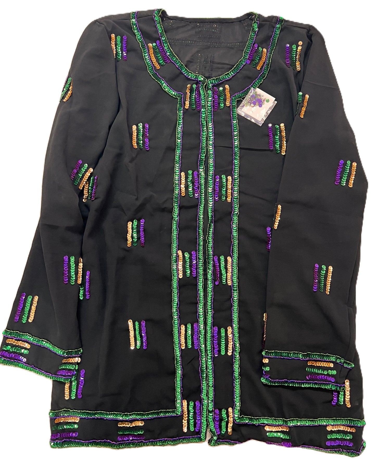 Mardi Gras sequined chiffon jacket Top for women. Your partywear would be colorful. ONE SIZE FIT ALL.